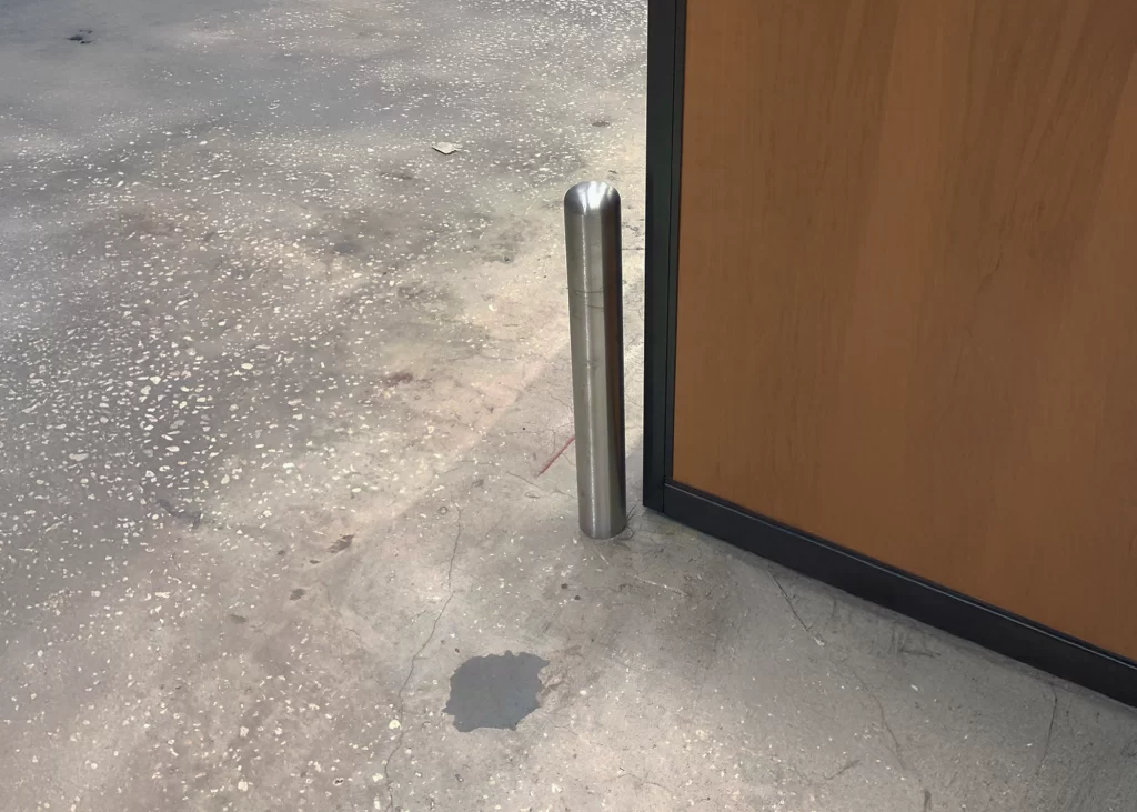 Designed with retailers in mind, this interior bollard is constructed with a rubber base to help absorb impacts, while still maintaining a sharp design look with a stainless-steel cover. Strong and durable for all your retail and back room spaces.